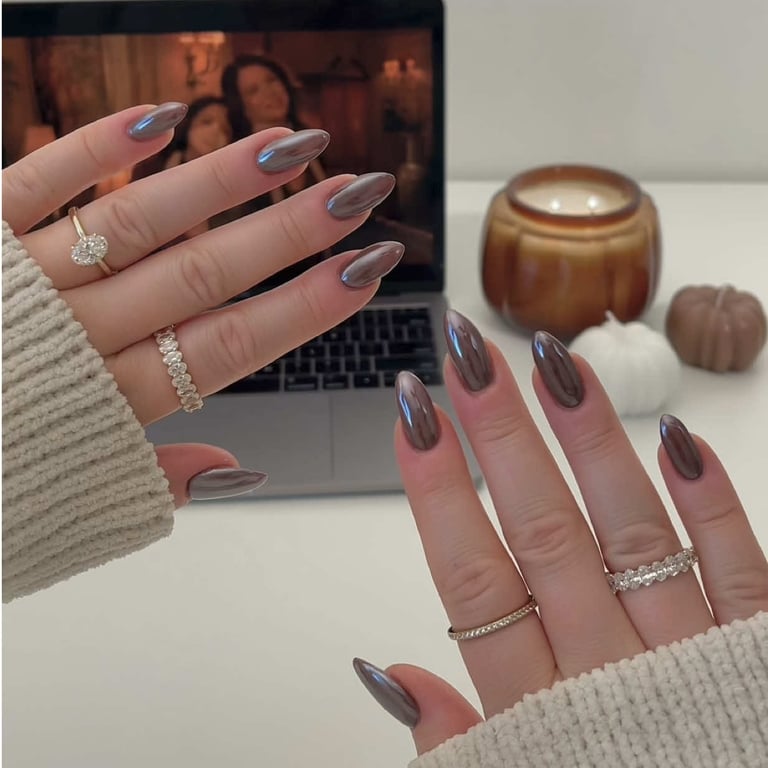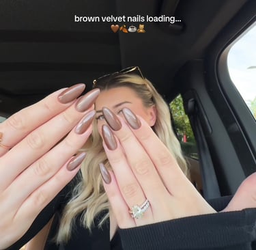 Velvet nails are trending everywhere, and the chocolatey brown shade is the ultimate cozy fall color. The magnetic top coat creates that plush, soft-focus finish that catches the light beautifully—like crushed velvet on your nails.