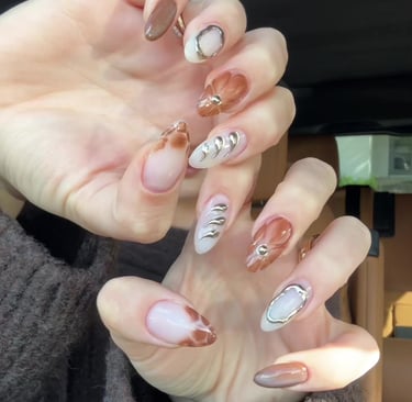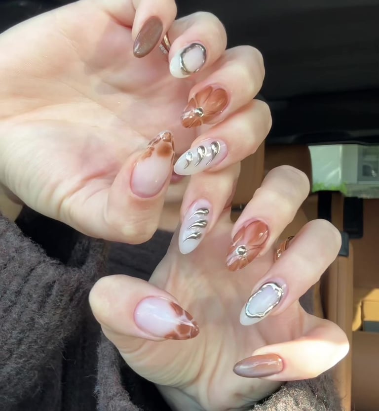 Think copper, bronze, and golden tones—warm metallic nails are one of the best fall fashion pairings. They feel festive, flattering on every skin tone, and pair perfectly with cozy knits or a sleek night-out look.