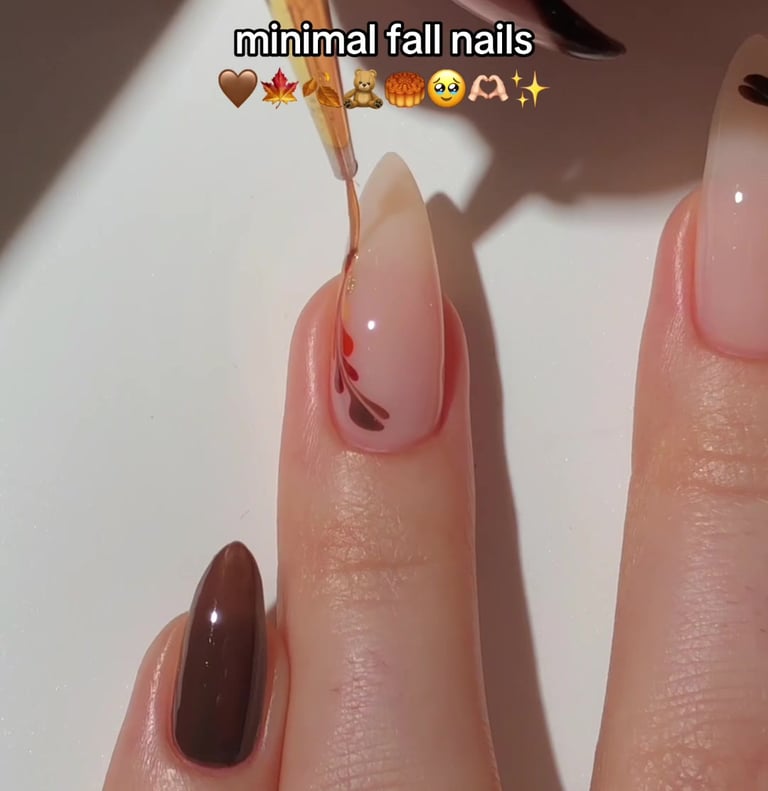 If you prefer subtle details, this trend is for you. Minimalist nail art—like tiny fall leaves, delicate dots, or abstract swirls in earthy tones—adds just the right amount of seasonal flair without being too busy.